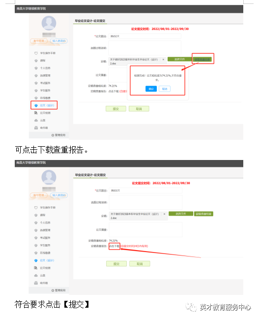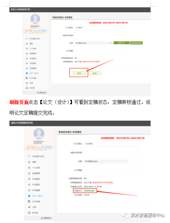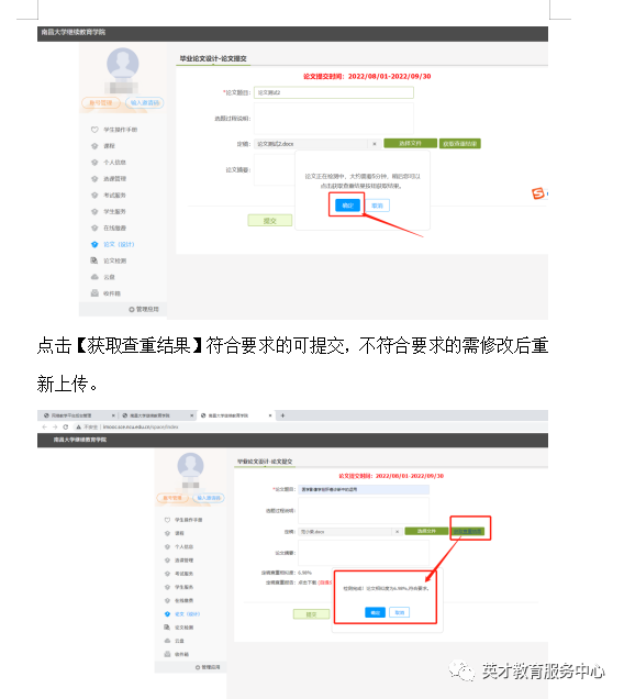 特别提醒:切勿不看南昌大学下发论文要求,随意提交,否则审核不通过,将影响毕业。